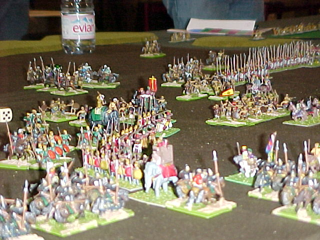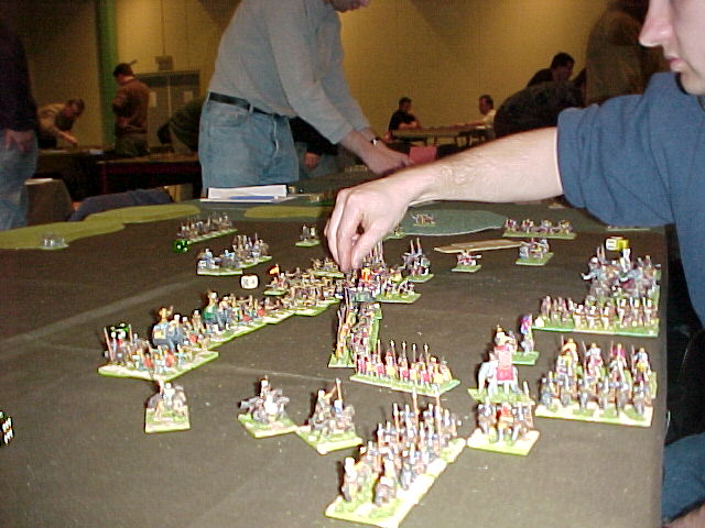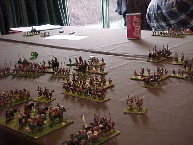 In this picture you see how his auxilia broke through the center and are facing my reserve cavalry now. You can see the whole in my lines where my brave, but not so able, bowmen once stood. (It's probably the commanders fault, but hey, he's writing this thing :)